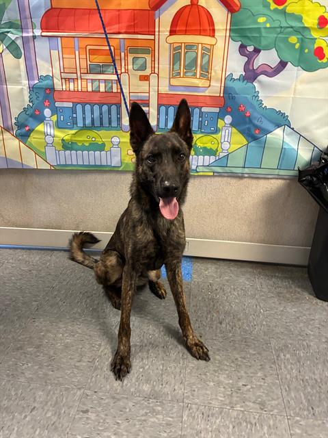 The shelter named me Comet. I am a 2 year old neutered male brown brindle Dutch Shepherd. I have been at the shelter since Monday, June 16, 2025. Must provide proof of home ownership or landlord approval at the time of adoption.