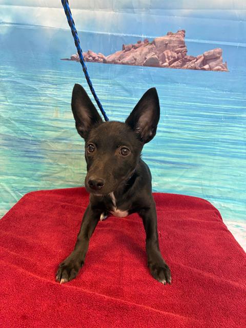 The shelter named me Lily Munster. I am a 4 month old female tricolor Siberian Husky Mix. I have been at the shelter since Tuesday, October 14, 2025. Must provide proof of home ownership or landlord approval at the time of adoption.