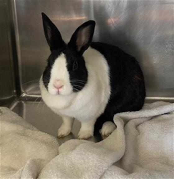 The shelter named me Mr Chin. I am a 1 year old black & white Rabbit Sh. I have been at the shelter since Friday, October 24, 2025. Must provide proof of home ownership or landlord approval at the time of adoption.